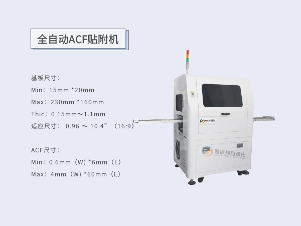 自动基板搬运、机械校正、ACF贴附、ACF检测,除基板上来外不需要固定作业员