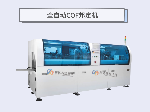 设备自动进行基板搬运、CCD位置校正、ACF贴附、COF预压、COF本压的全过程,COF冲切、Tray盘、人工上料(选配),可自动完成高精度单颗COF的邦定